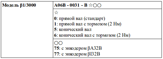 Структура условного обозначения сервомоторов модели β1/3000.
